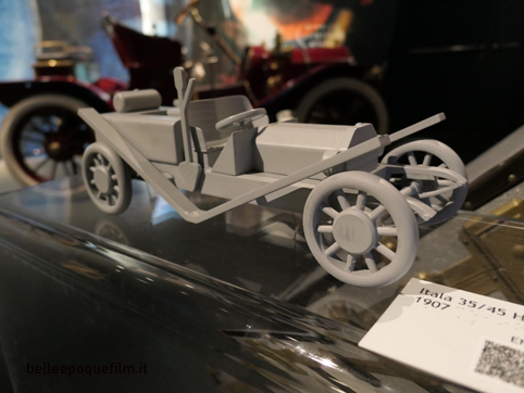 Simbolo indiscusso di quella ventata di modernità che l’automobile rappresentò per l’uomo del secolo scorso, l’Itala modello 35/45 HP è la protagonista del leggendario raid compiuto nel 1907 da Pechino a Parigi. Appositamente attrezzata per la gara, la Itala di Scipione Borghese (in seguito chiamata “Pechino-Parigi”) era dotata di tre grandi serbatoi per la benzina – due posti lateralmente da 150 litri cadauno e uno da 80 litri nella parte posteriore della vettura – ed era azionata da un motore di oltre 7 litri di cilindrata con cambio a 4 marce. Le ruote erano più grandi rispetto al modello di fabbrica, di uguale diametro nell’assale anteriore e posteriore per limitare le scorte, con cerchioni di legno più facili da riparare e lunghe assi di frassino al posto dei parafanghi.